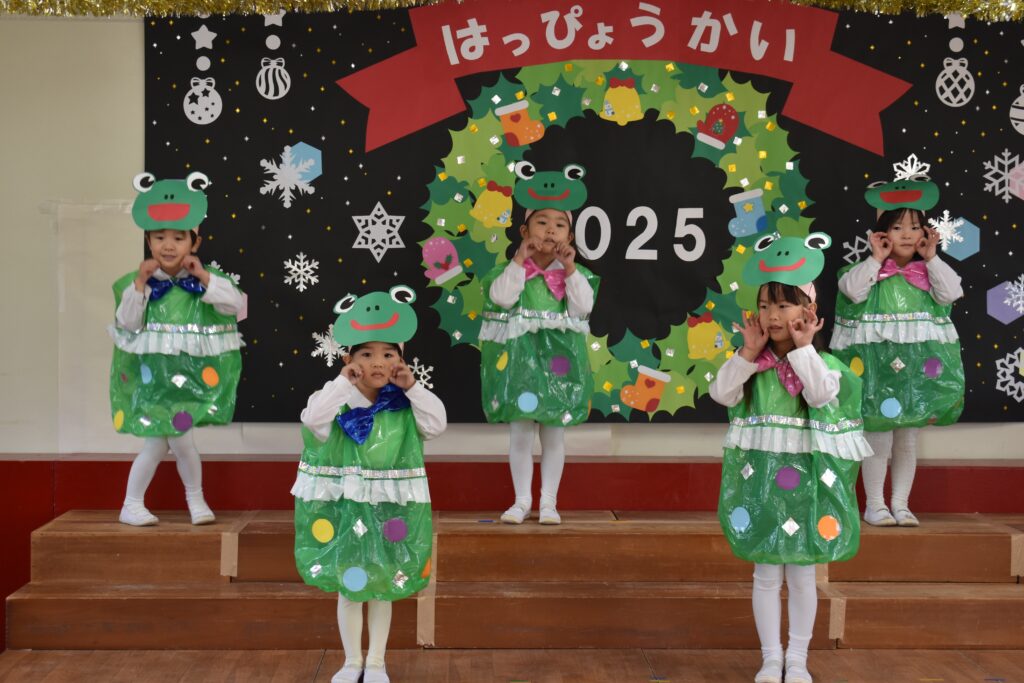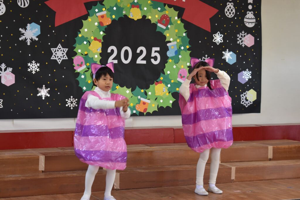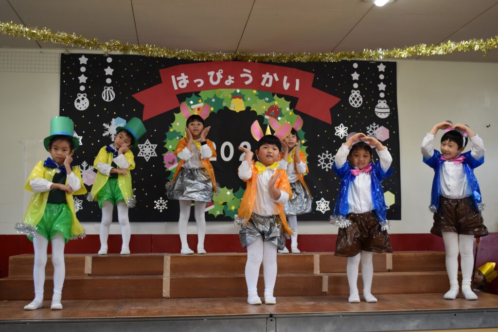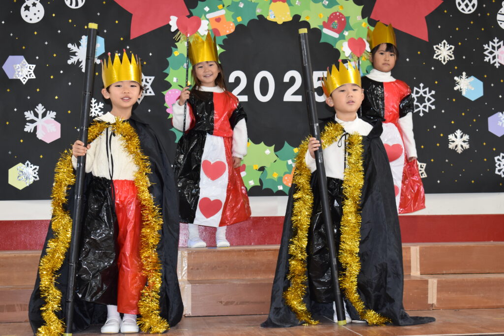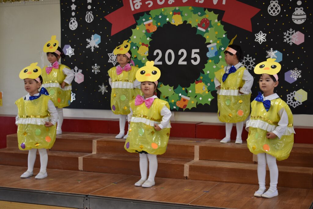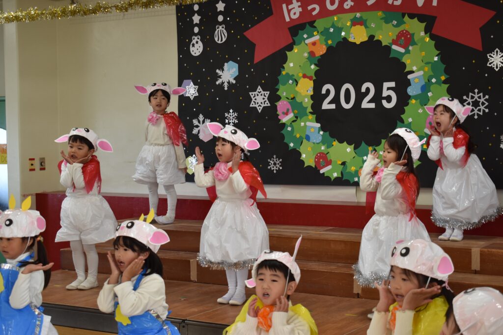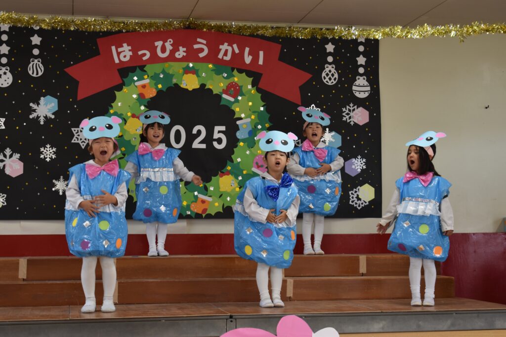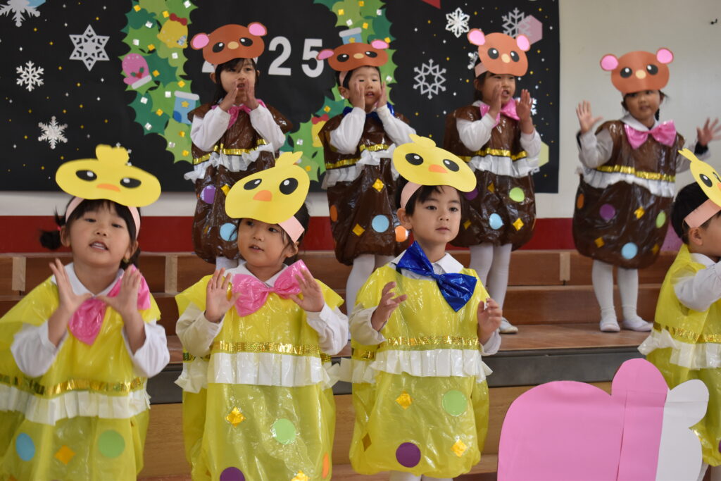 2025年12月12日 いべんと 発表会 今日は待ちに待った発表会! 一生懸命に練習した劇を保護者の方々に披露しました。 アップルクラス「おおかみと七ひきの子ヤギ」 ピーチクラス「てぶくろ」 キャロットクラス「不思議の国のアリス」
