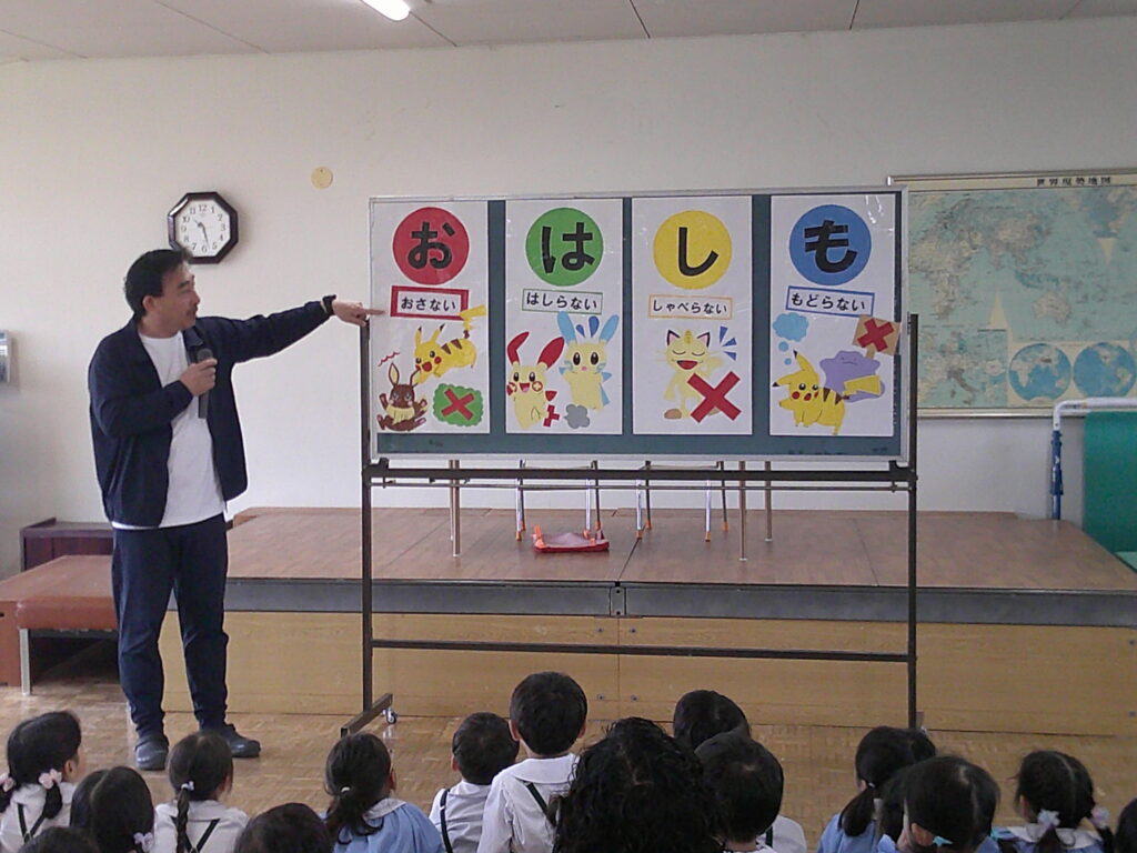 『地震や火事、洪水が発生した時はどうする?』子ども達は真剣に話を聞いていました。